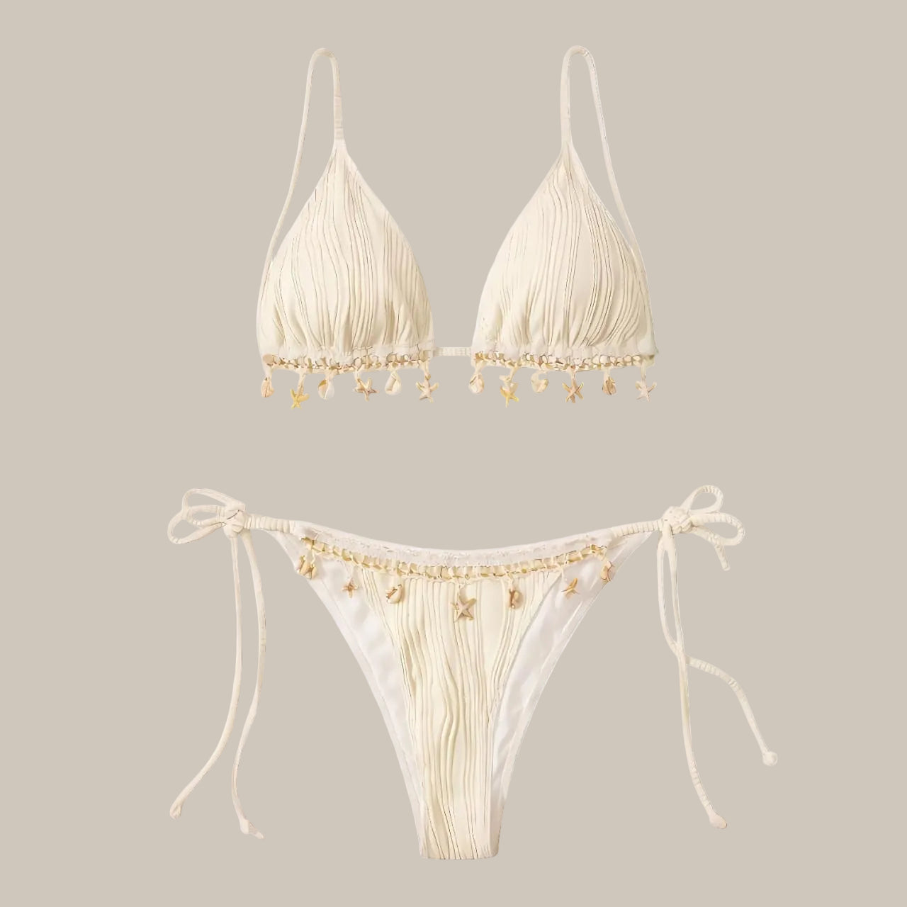 🐚✨ Bikini Shell Serenity — el diseño que captura la calma del mar y la feminidad en cada detalle. Con motivos de conchitas y textura plisada, este bikini de Lollidark es pura estética de playa dreamy. Disponible en talla standard S/M. 💕