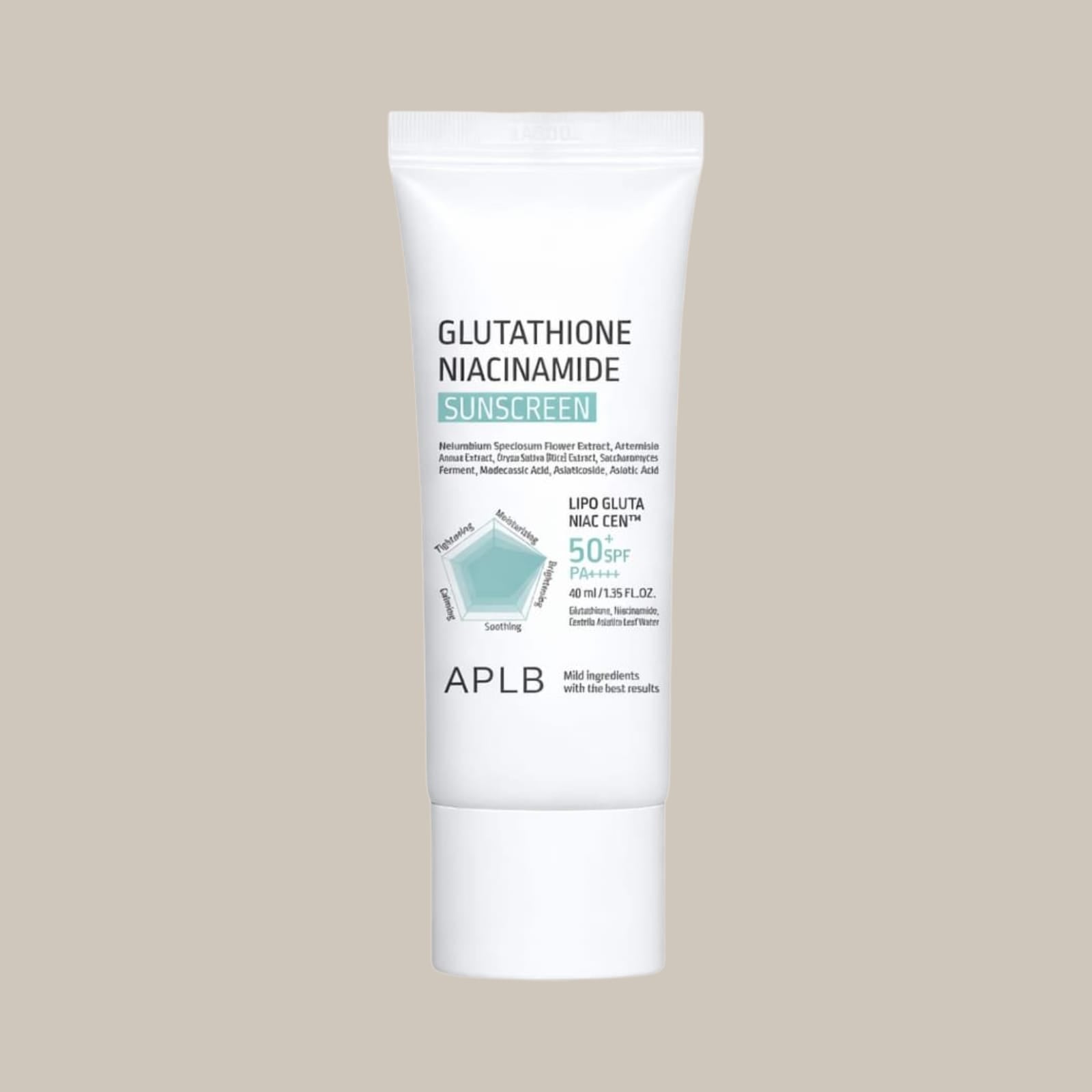 El Bloqueador Glutathione Niacinamide Sunscreen de APLB no solo protege, sino que también trata tu piel: sin efecto pesado ni blanquecino, solo piel luminosa, equilibrada y protegida. ✨☁️