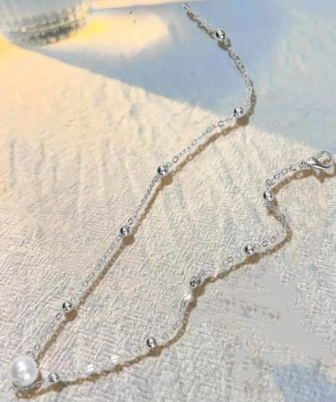 El Collar Eunha (galaxia en coreano) es sutil, femenino y con un brillo suave que parece flotar sobre la piel: diseño minimal y elegante en tono plateado atemporal. 🌙✨
