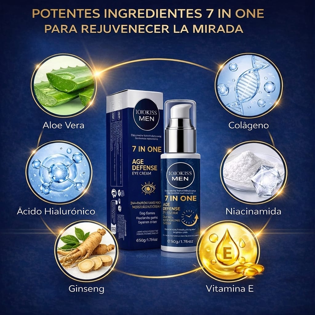 🔥 Mirada más fresca, firme y rejuvenecida sin complicaciones. Este contorno de ojos 7 en 1 está diseñado para hombres que quieren resultados visibles con una rutina simple y efectiva.
