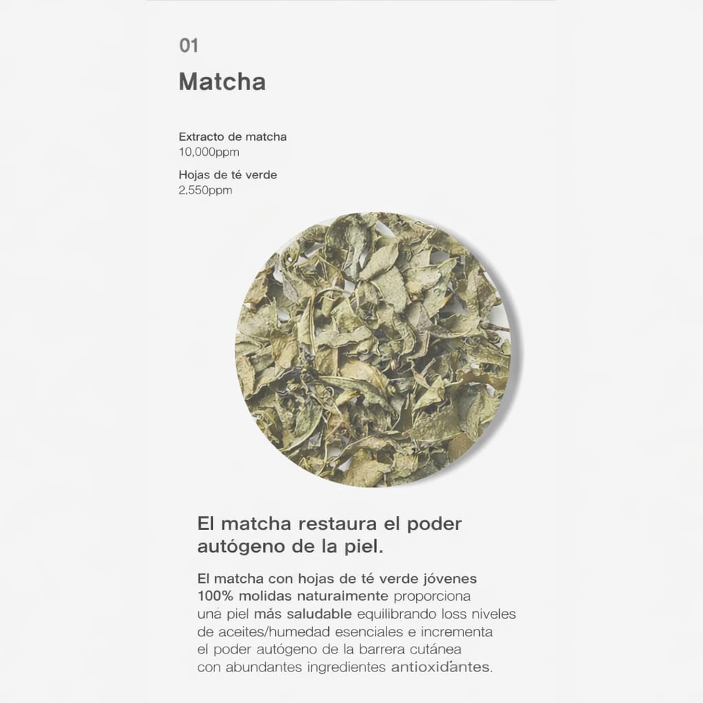 🍃 Matcha antioxidante que protege la piel de radicales libres y el estrés ambiental