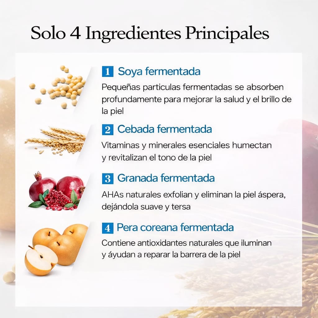 🌱 Extractos fermentados de frijol: suavizan, refinan poros y mejoran la textura.