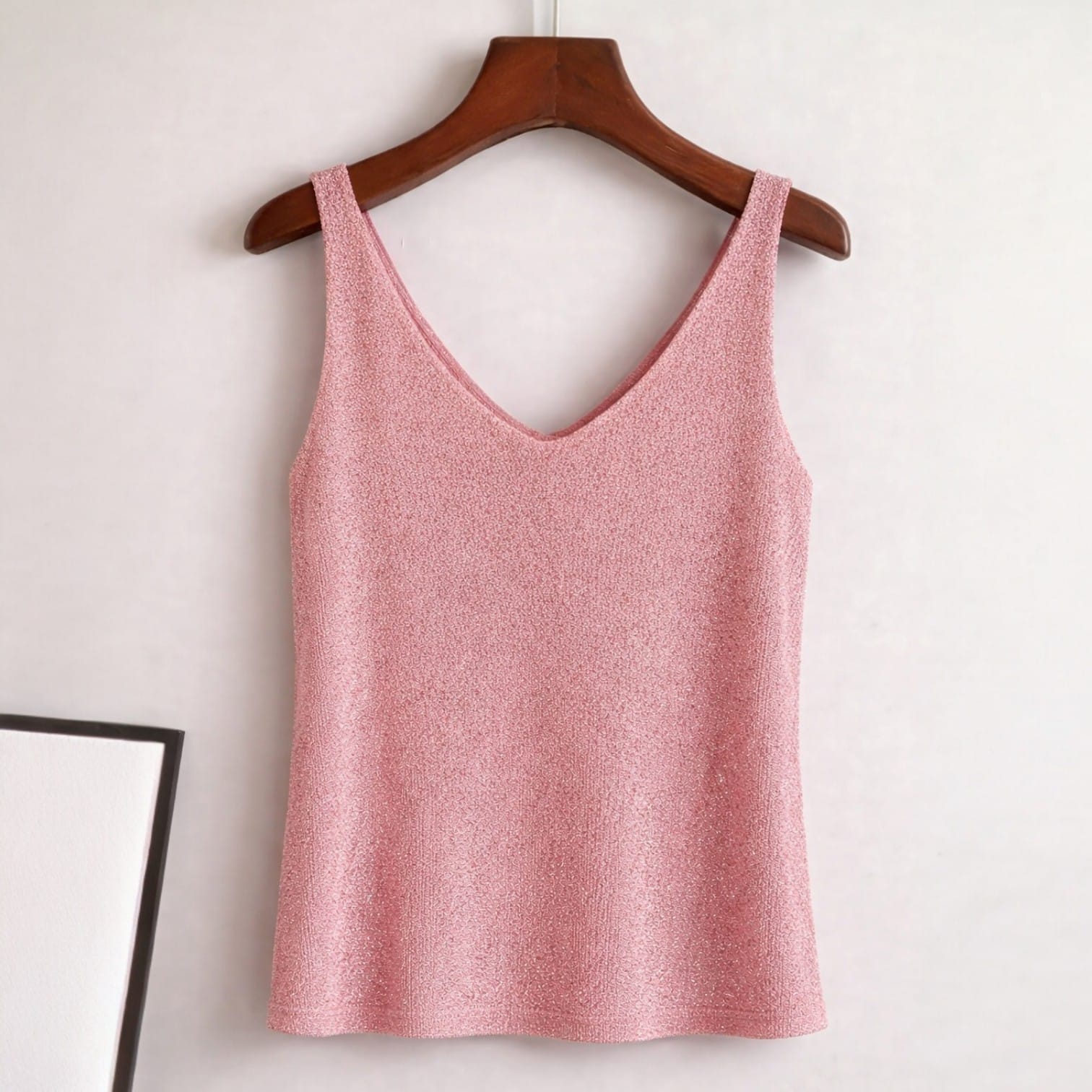 El Top Rosa Glitter convierte un look simple en uno totalmente aesthetic: tela rosa con brillos integrados que refleja la luz de forma sutil, delicada y chic. Pura vibra soft girl y coquette. 💖✨